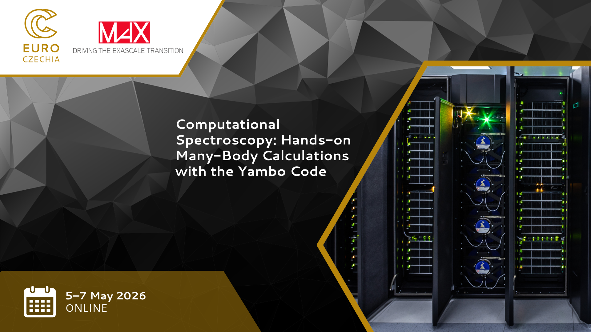 MaX Centre of Excellence a Národní centrum kompetence pro HPC vás zvou na kurz „Computational Spectroscopy: Hands-on Many-Body Calculations with the Yambo Code“, který se uskuteční online ve dnech 5.–7. května 2026.